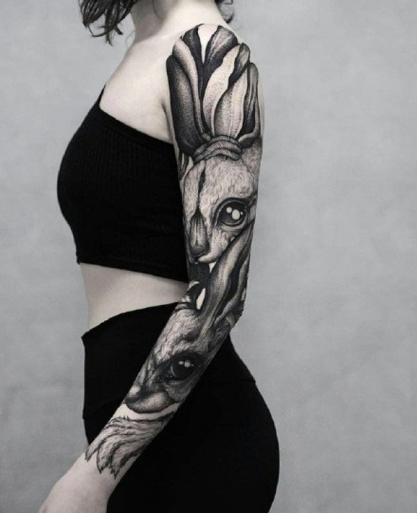 国外的欧美大花臂写实纹身图案作品9张