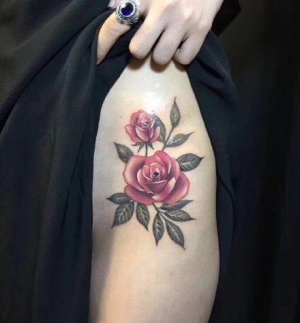 性感花朵纹身--女性大腿侧部性感的花朵纹身
