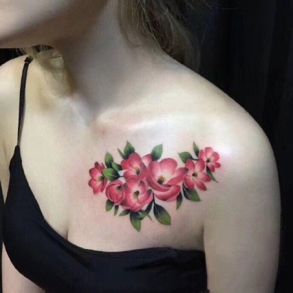 肩花纹身--一组适合肩部的黑灰肩花纹身图案欣赏