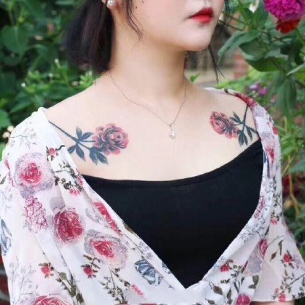 肩花纹身--一组适合肩部的黑灰肩花纹身图案欣赏