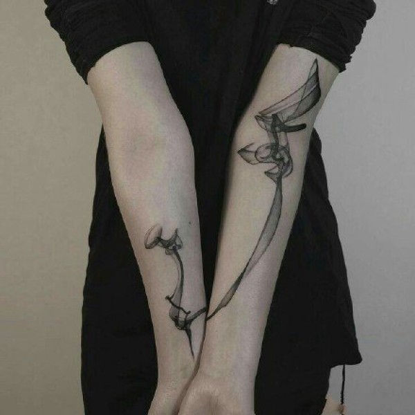 飘逸的黑色浓烟雾风格的水墨纹身作品图案