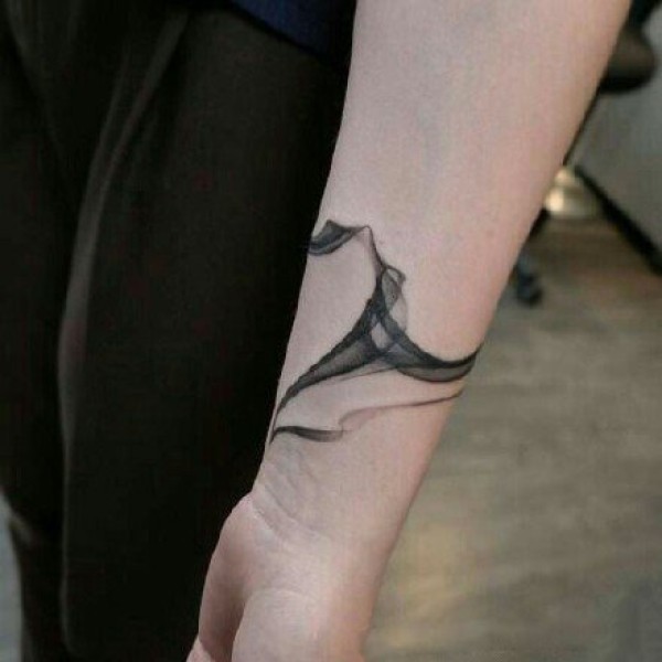 飘逸的黑色浓烟雾风格的水墨纹身作品图案