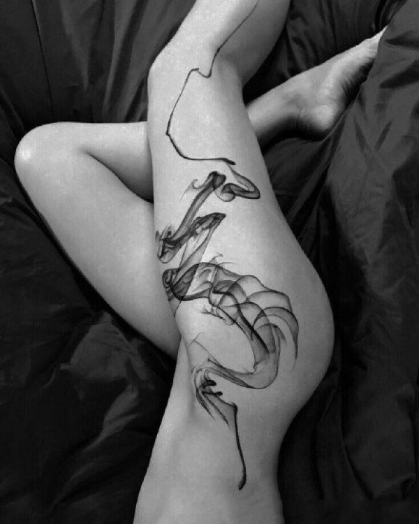 飘逸的黑色浓烟雾风格的水墨纹身作品图案