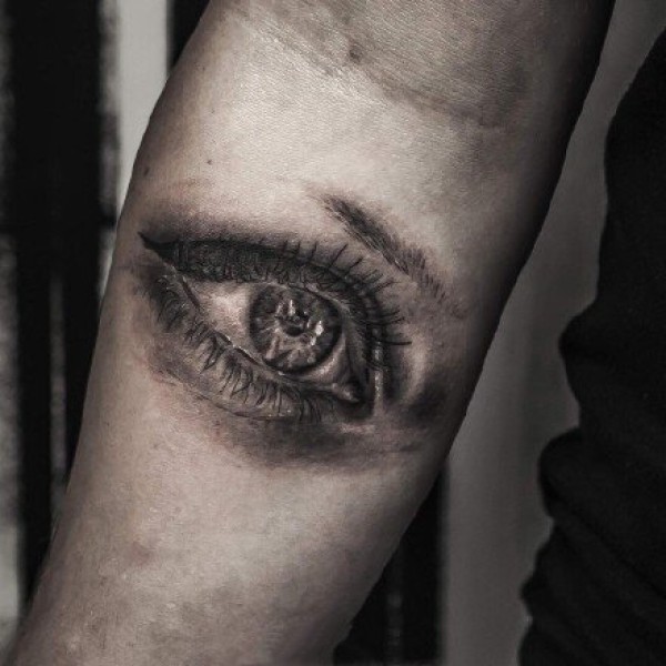 纹身眼睛纹身图案 男性手臂上穿透灵魂的黑色素描纹身眼睛纹身图案