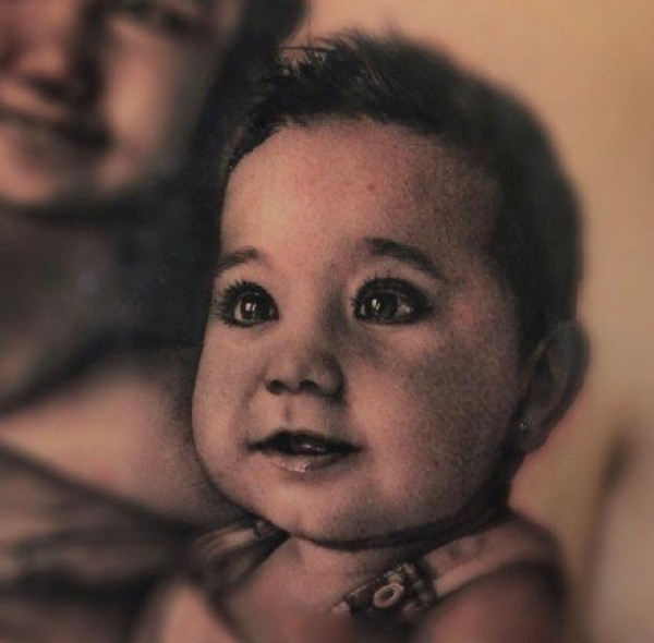 一组写实的小孩子宝宝肖像纹身图案