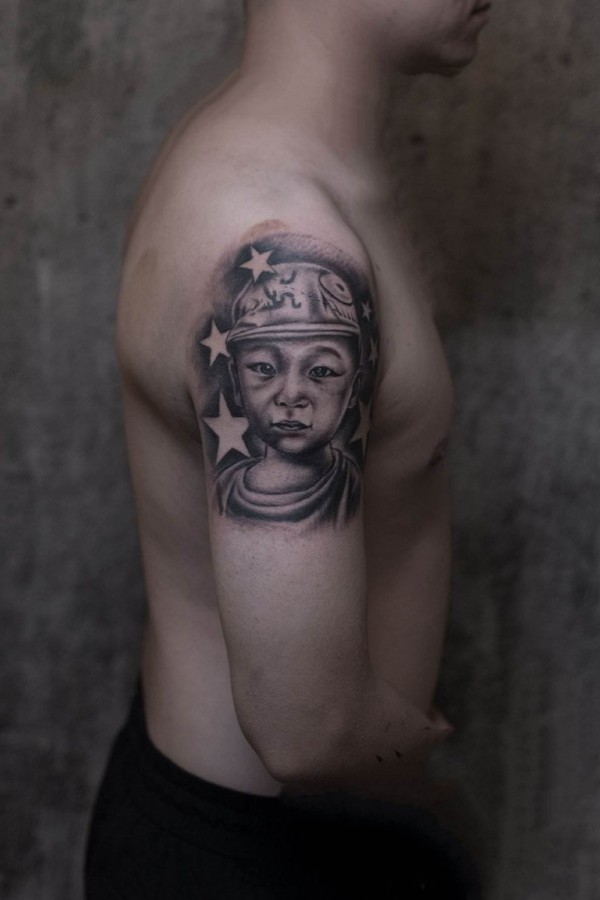 一组写实的小孩子宝宝肖像纹身图案