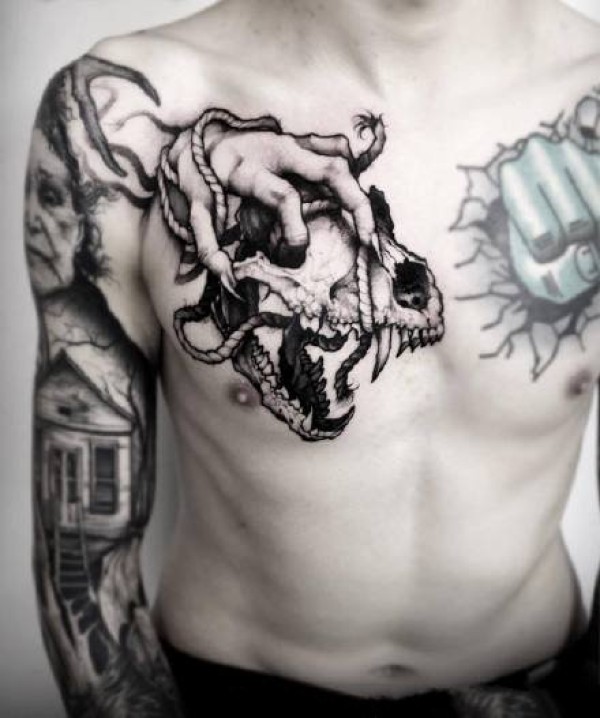 欧美花臂纹身_22张霸气黑灰欧美大黑花臂纹身图案作品图片