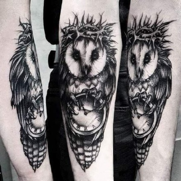 手臂胳膊上的欧美黑灰钟表玫瑰纹身图案9张