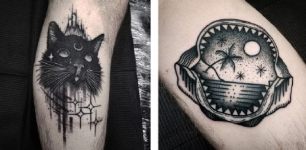 花腿纹身--一组大黑腿纹身图案作品欣赏