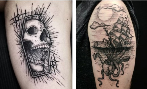 花腿纹身--一组大黑腿纹身图案作品欣赏