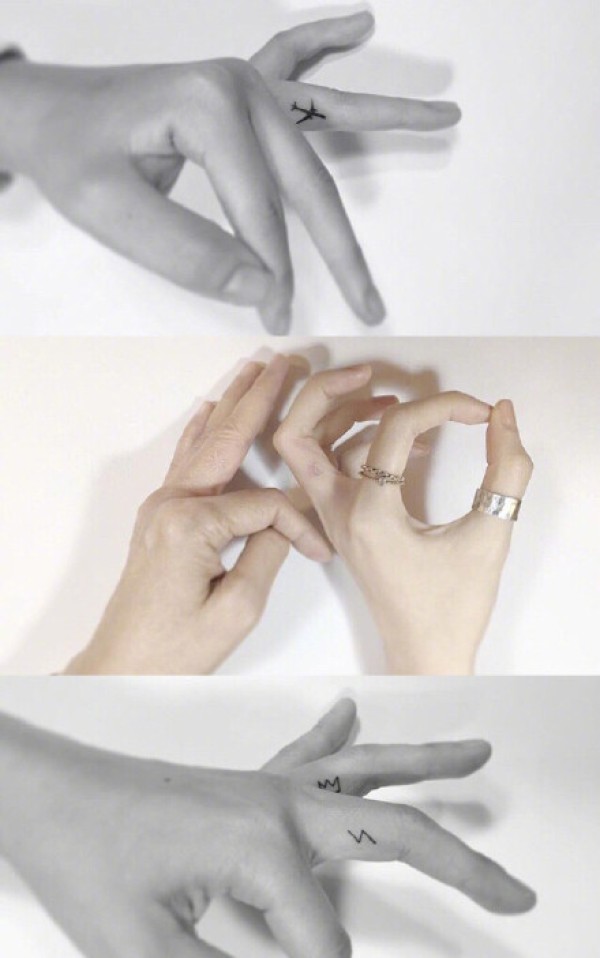 女孩子喜欢的手指上超简约的小清新纹身图案