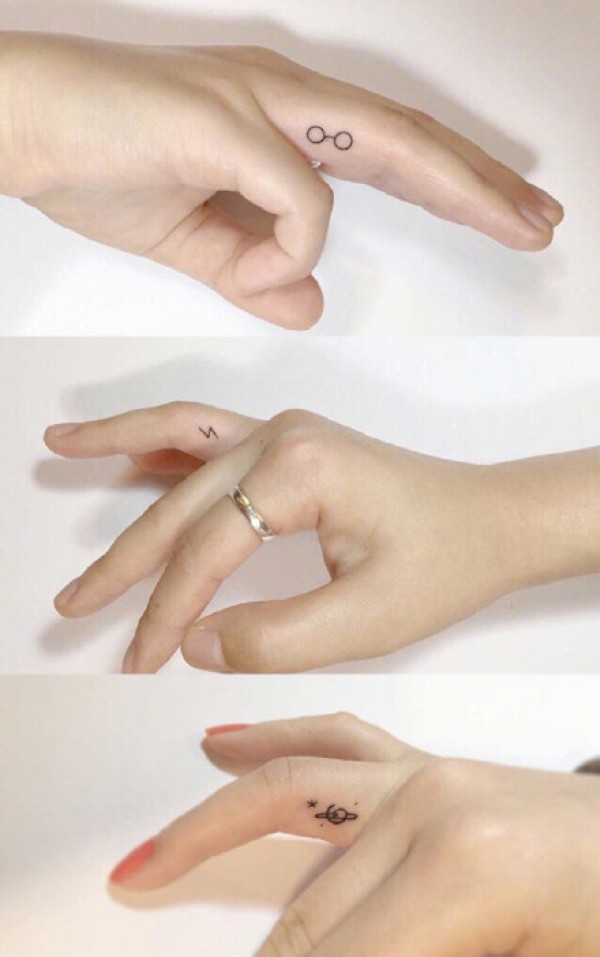 女孩子喜欢的手指上超简约的小清新纹身图案