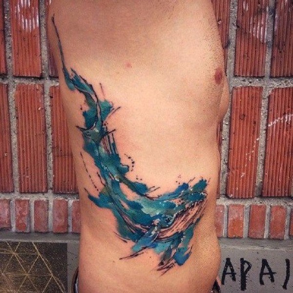 9张漂亮的水彩色鲸鱼纹身图案作品