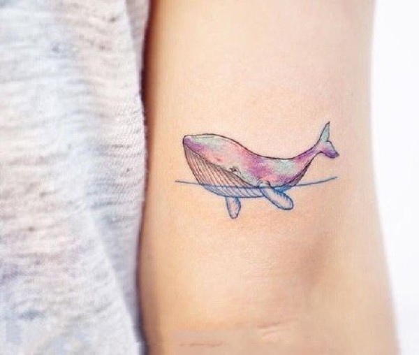9张漂亮的水彩色鲸鱼纹身图案作品