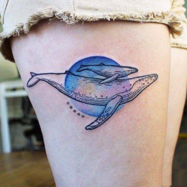 9张漂亮的水彩色鲸鱼纹身图案作品