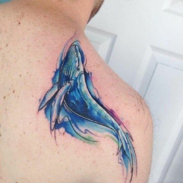 9张漂亮的水彩色鲸鱼纹身图案作品
