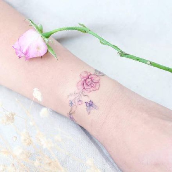 女生水彩粉色小清新系列纹身图