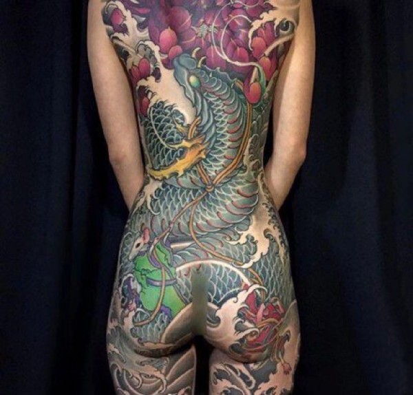 9张传统风格的彩色纹身大满背图案欣赏