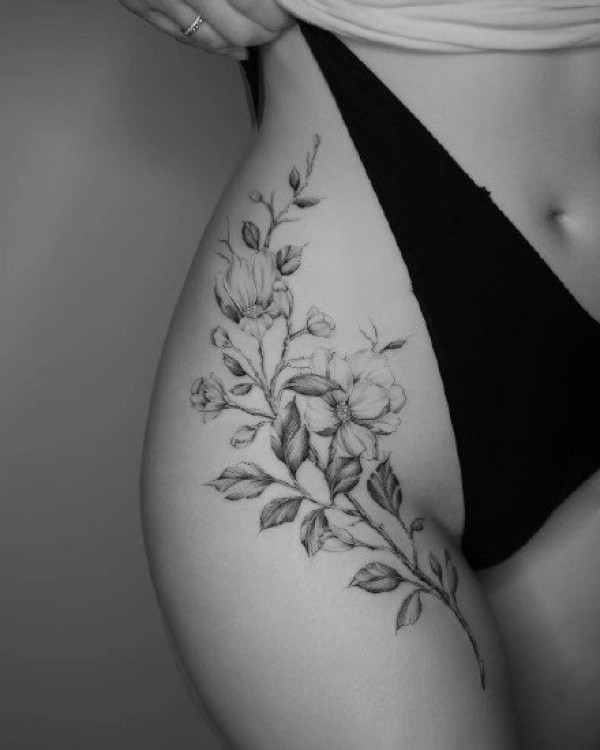 腿部纹身女 9组女性大腿侧部性感纹身作品图