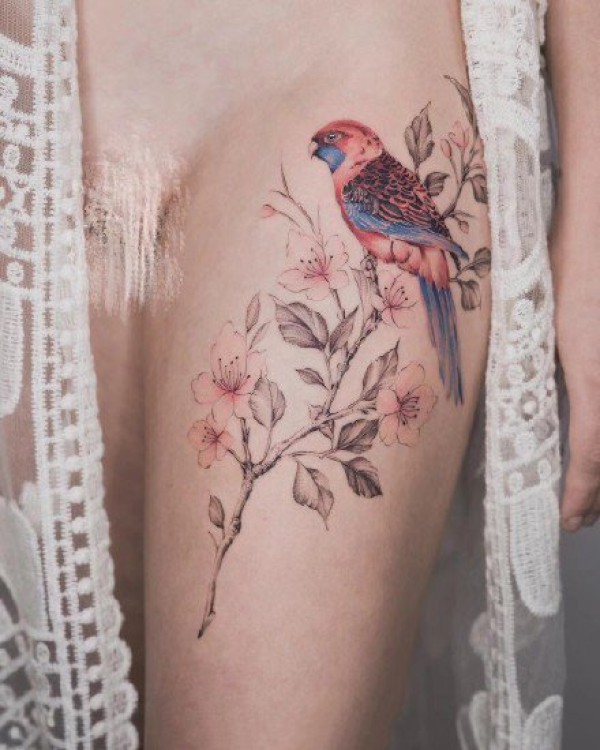 腿部纹身女 9组女性大腿侧部性感纹身作品图