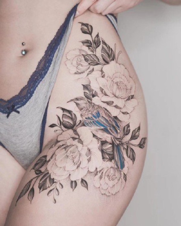 腿部纹身女 9组女性大腿侧部性感纹身作品图