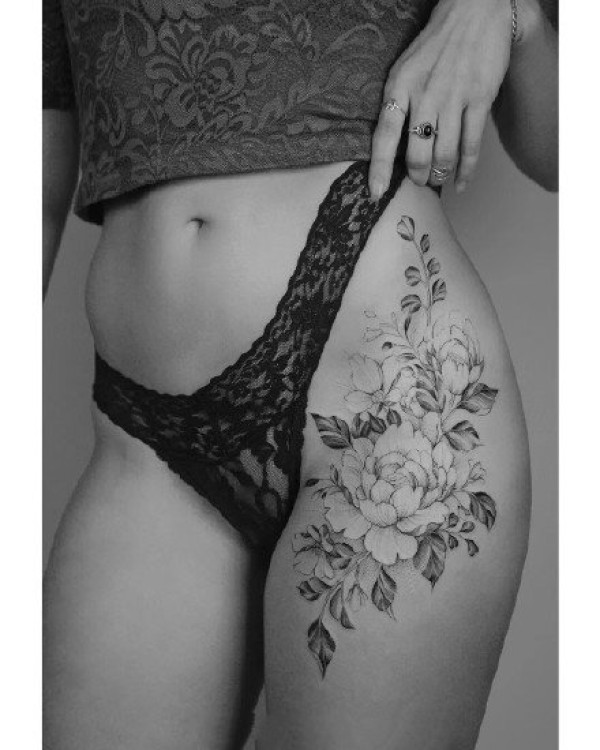 腿部纹身女 9组女性大腿侧部性感纹身作品图
