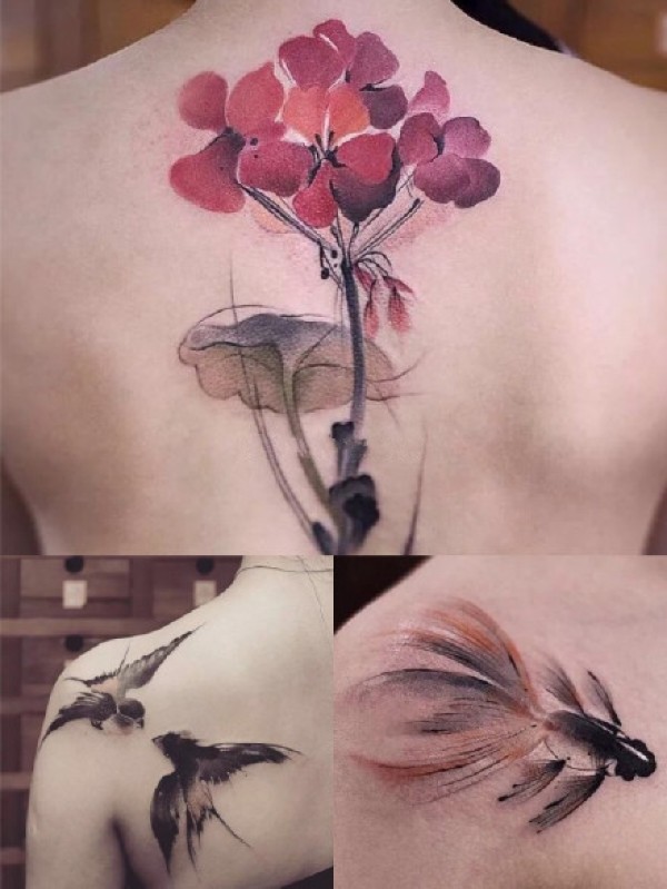 国画水墨纹身-9张水墨风格的国画纹身图案
