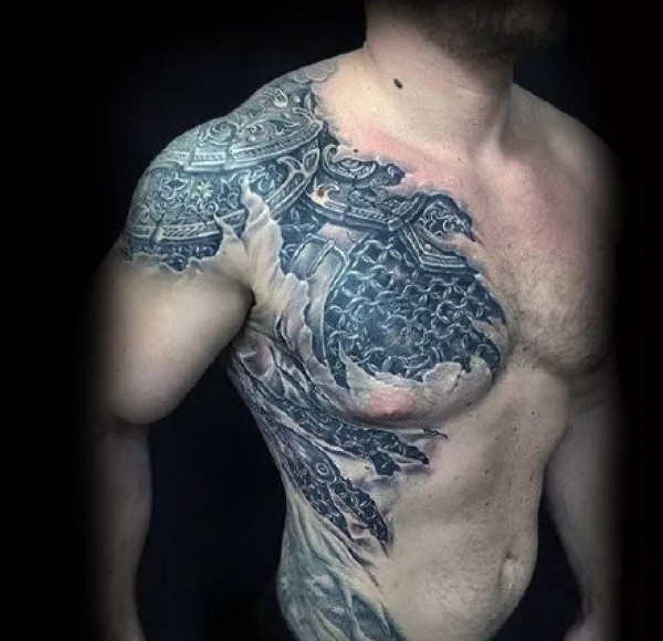 9张男性胸部逼真的3d立体个性纹身图案