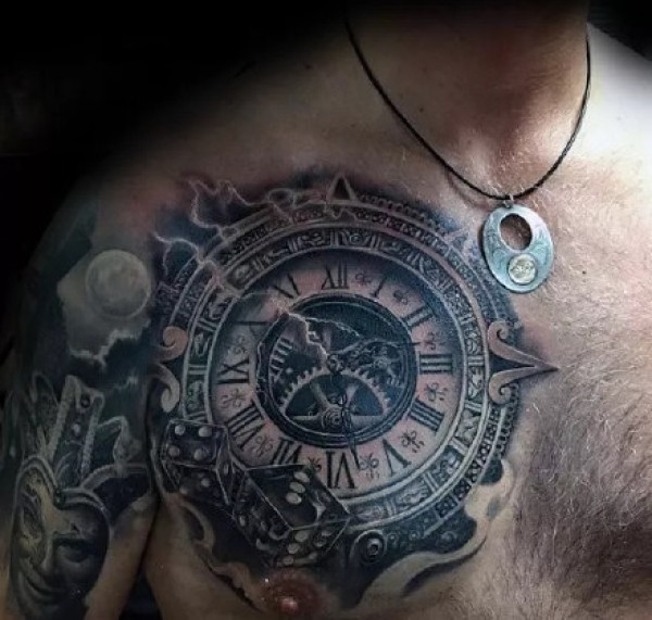 9张男性胸部逼真的3d立体个性纹身图案