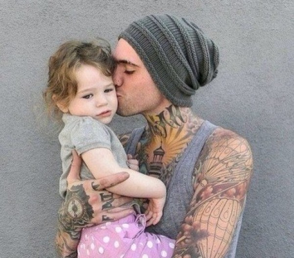 一组国外纹身父亲和孩子的亲密摄影作品图片