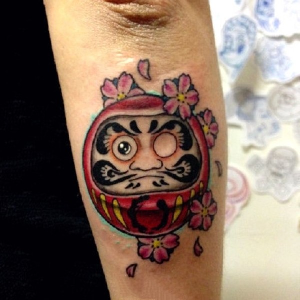 达摩蛋纹身--9张好看的日式樱花达摩蛋的纹身图案