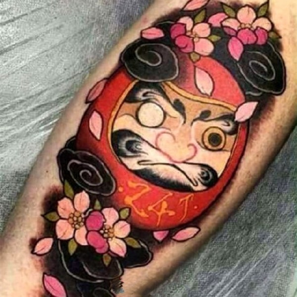 达摩蛋纹身--9张好看的日式樱花达摩蛋的纹身图案