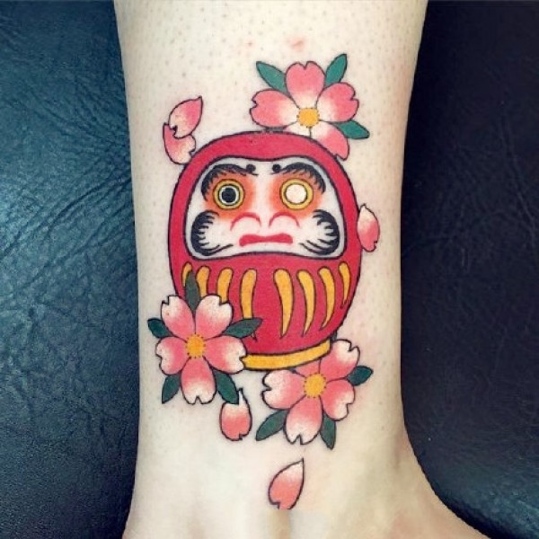 达摩蛋纹身--9张好看的日式樱花达摩蛋的纹身图案