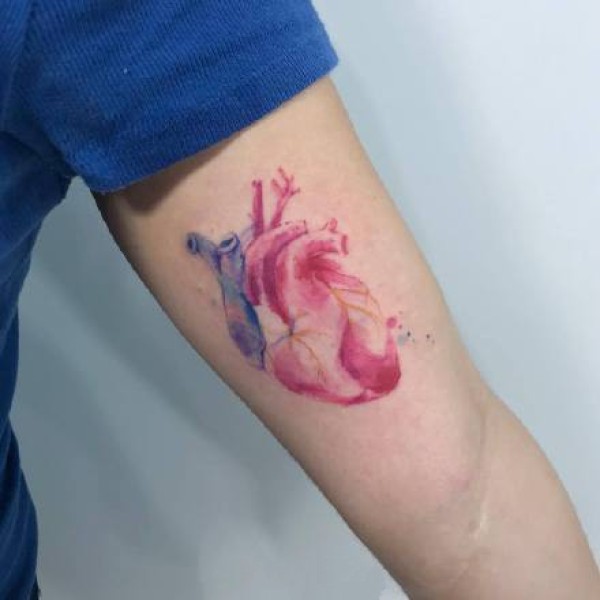 胳膊原创水彩心上钥匙纹身图案