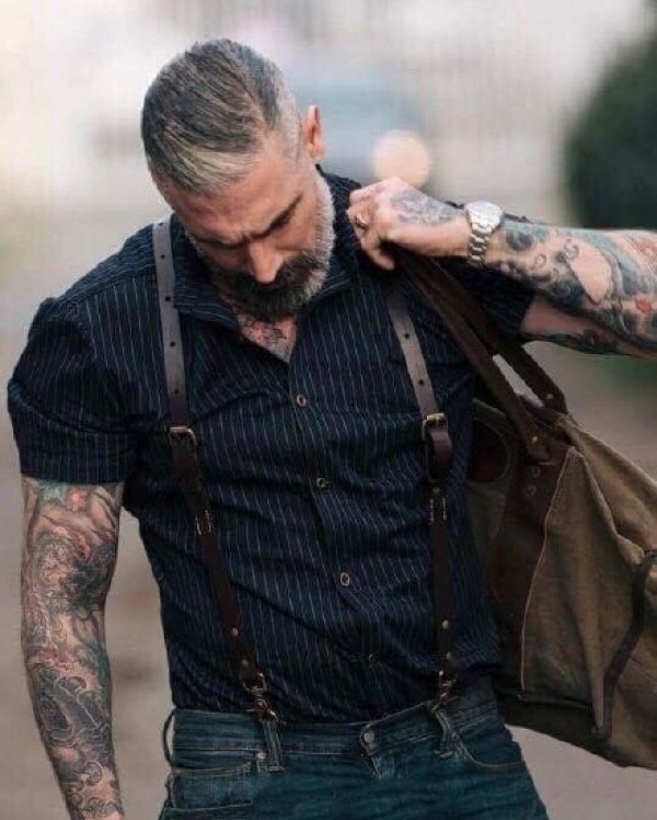 一组国外的帅气纹身老大叔写真摄影图片