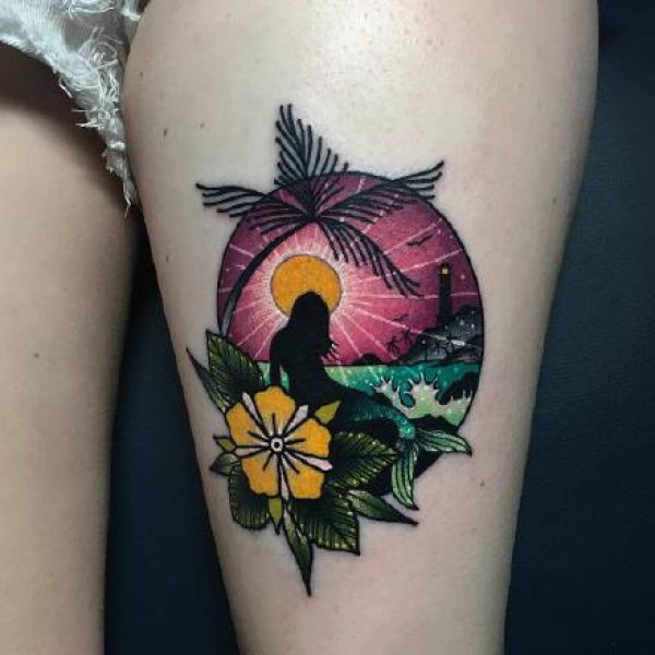 彩色风景纹身--一组几何图形+彩色的小风景纹身图案欣赏