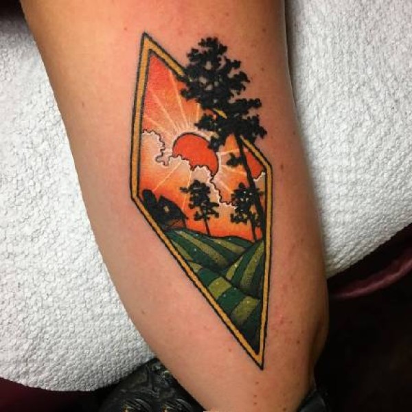 彩色风景纹身--一组几何图形+彩色的小风景纹身图案欣赏