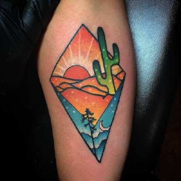彩色风景纹身--一组几何图形+彩色的小风景纹身图案欣赏