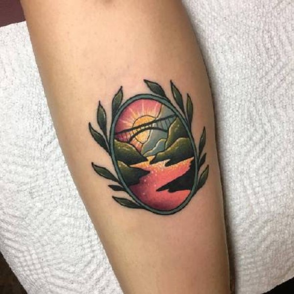 彩色风景纹身--一组几何图形+彩色的小风景纹身图案欣赏
