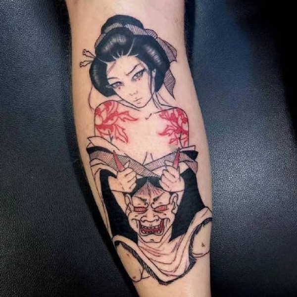 艺伎纹身--一组独特创意的日式艺妓纹身图案作品