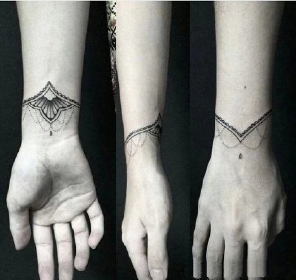 小臂手腕处很有民族风情的手环臂环纹身图案