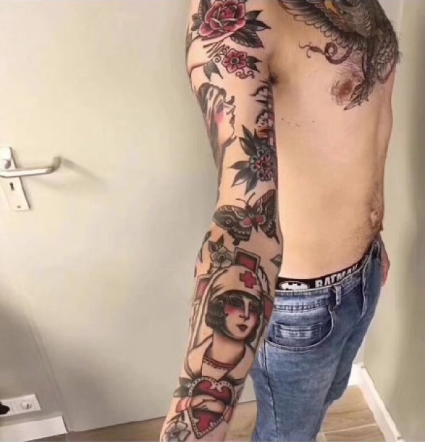 school花臂纹身--一组漂亮的school风格的花臂纹身图案作品