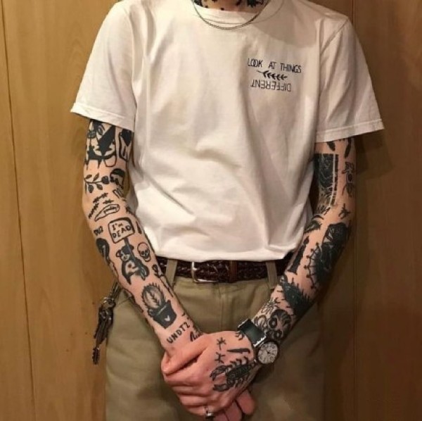 school花臂纹身--一组漂亮的school风格的花臂纹身图案作品