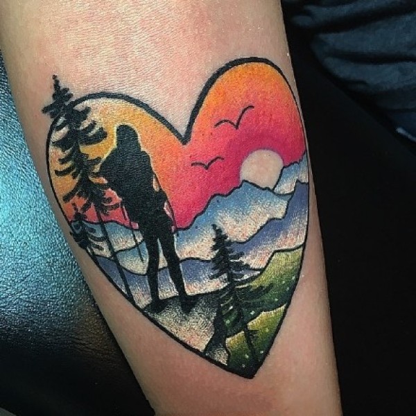 彩色风景纹身--一组几何图形+彩色的小风景纹身图案欣赏