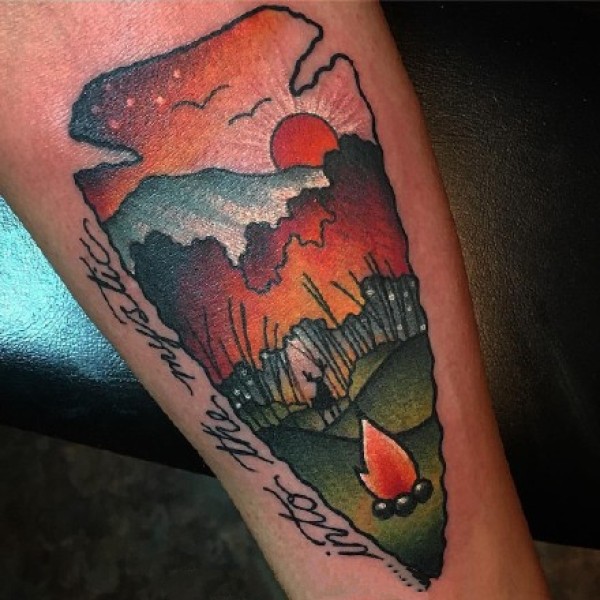 彩色风景纹身--一组几何图形+彩色的小风景纹身图案欣赏