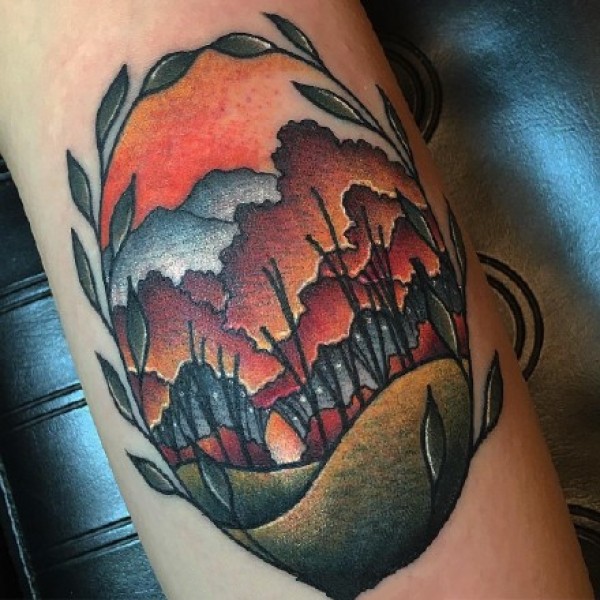 圆形风景纹身--几张几何圆形+风景纹身图案作品