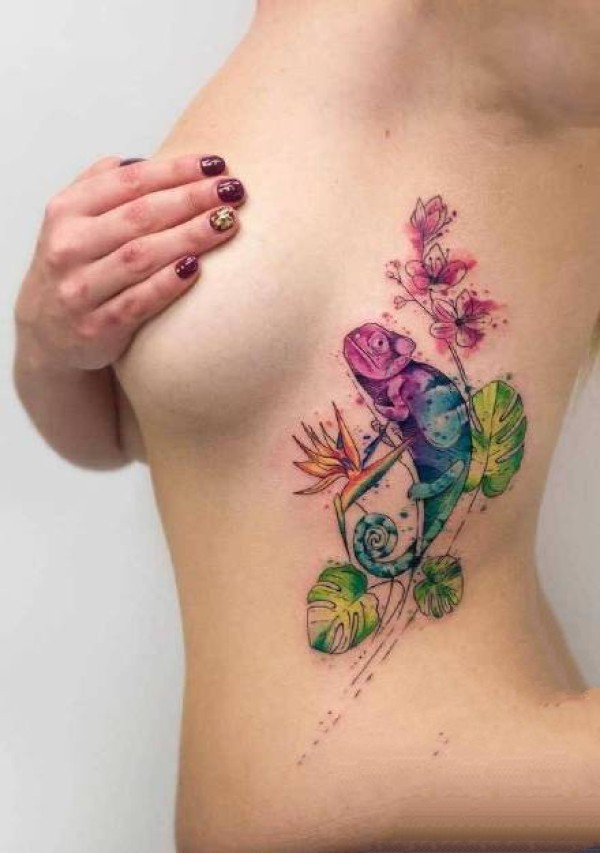 37张适合女生各部位的唯美漂亮的水彩纹身图案