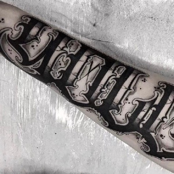 9张胳膊上很有个性的黑色英文花体字纹身图案