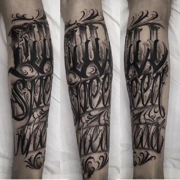 9张胳膊上很有个性的黑色英文花体字纹身图案