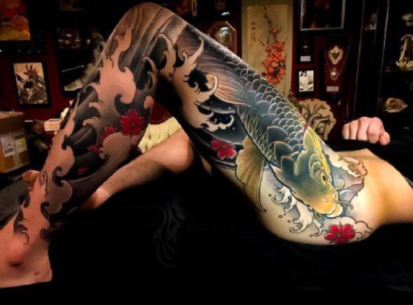 传统花腿纹身--18张传统风格的大花腿纹身图案作品